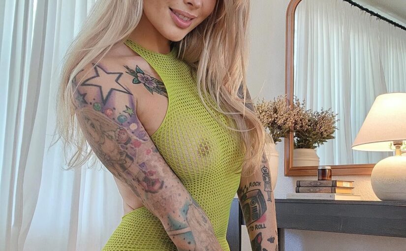 Laura Lux shares some photos, flaunting her goods in a see-through green bodysuit.