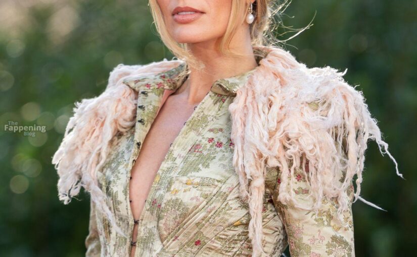 Australian actress Margot Robbie looks sensational in red stockings and mini skirt at at photocall for the film “Wuthering Heights” with cast and crew members in London